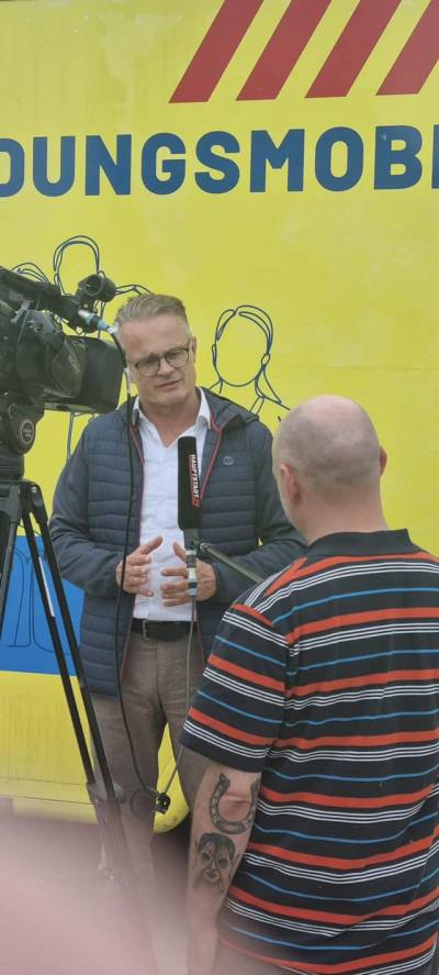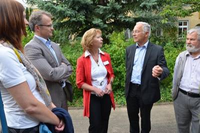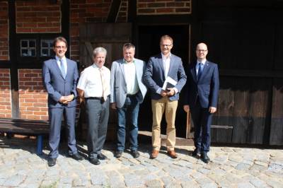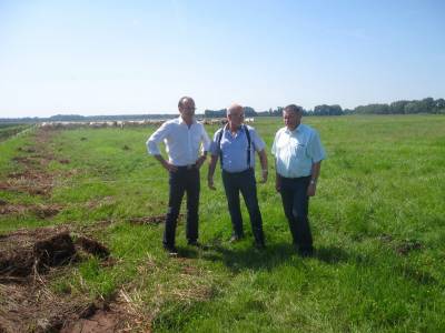 Am Morgen auf den Spreeauenwiesen des Bio-Agrarbetriebes Sielow/Cottbus mit dem GF Herrn Hotzler. Biolandwirtschaft, regionale Produktketten, Umweltschutz, EU-Richtlinien und Zukunftsinvestitionen - all das waren Themen unseres fast dreistündigen Gespräches mit Exkursion.