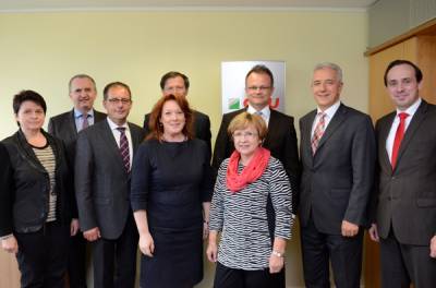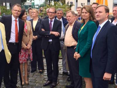 Bild v.l.n.r.: Iris Firmenich, stellvertretende CDU-Fraktionsvorsitzende des Sächsischen Landtags; Thomas Schmidt, stellvertretender CDU-Fraktionsvorsitzender des Sächsischen Landtags; Steffen Flath, CDU-Fraktionsvorsitzender des Sächsischen Landtags; Dr. Matthias Rößler, Präsident des Sächsischen Landtages, Anja Heinrich, Generalsekretärin CDU Brandenburg und kulturpolitische Sprecherin der CDU-Fraktion im Landtag Brandenburg; Prof. Dr. Michael Schierack, Fraktionsvorsitzender der CDU-Fraktion im Landtag Brandenburg; Uta Windisch, stellvertretende CDU-Fraktionsvorsitzende des Sächsischen Landtags; Stanislav Tillich, Ministerpräsident Freistaat Sachsen; Ingo Senftleben, Parlamentarischer Geschäftsführer der CDU-Fraktion im Landtag Brandenburg