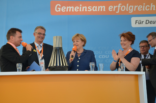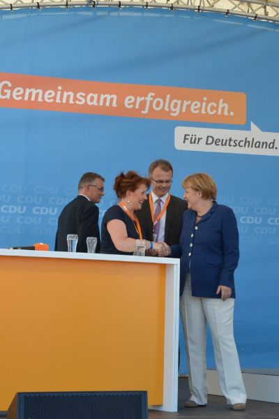 Vor über 2000 Teilnehmern läutete die CDU Brandenburg am 7.9. in Oranienburg mit Bundeskanzlerin Dr. Angela Merkel, dem Landesvorsitzenden Michael Schierack, Generalsekretärin Anja Heinrich und den Bundestagskandidaten Uwe Feiler, Sebastian Steineke sowie Andrea Voßhoff die heiße Phase des Bundestagswahlkampfes in Brandenburg ein. Bei strahlendem Sonnenschein und toller Stimmung erlebten die Teilnehmer eine rundum gelungene Veranstaltung. Quelle: www.cdu-brandenburg.de