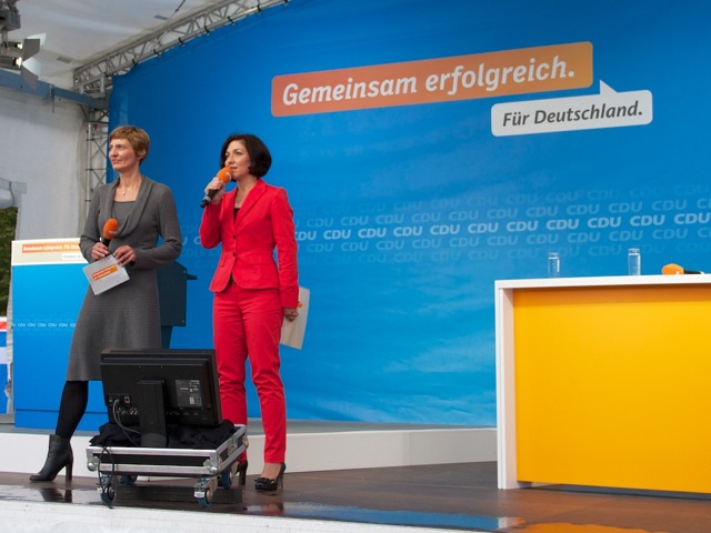 Vor über 3000 Teilnehmern startete die CDU Brandenburg am 16.9. in Potsdam mit Bundeskanzlerin Dr. Angela Merkel, dem Landesvorsitzenden Michael Schierack, Generalsekretärin Anja Heinrich und den Bundestagskandidaten Katherina Reiche und Michael Stübgen in die Schlussphase des Bundestagswahlkampfes in Brandenburg. Quelle: www.cdu-brandenburg.de