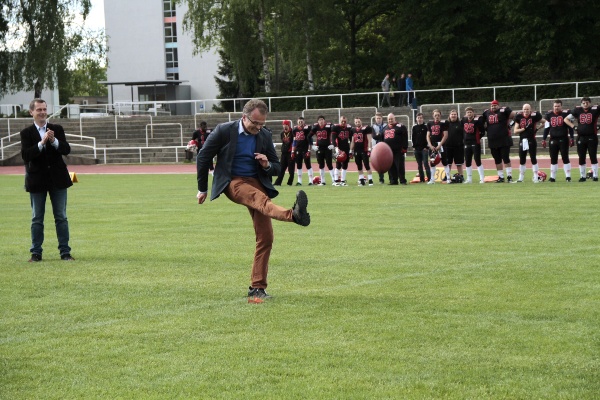 Michael Schierack eröffnet die neue Saison in der Regionalliga im American Football, 10.05.2014