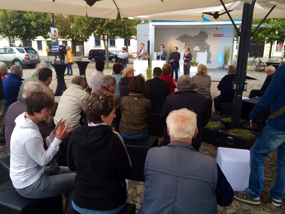 Zunächst war Michael Schierack mit dem Landtagskandidaten Werner Mundt in Oranienburg unterwegs. Anschließend führte der Weg in den Barnim gemeinsam mit den Kandidaten Uwe Liebehenschel und Uwe Bartsch. Weiter ging die Tour in die Uckermark, wo Michael Schierack gemeinsam mit unserem Kandidaten Andreas Meyer erst die Stadtwerke in Prenzlau und anschließend Bauer Suhr in Seelübbe besucht hat. Zum Abschluss fand eine Abendveranstaltung auf dem Markt in Templin mit Henryk Wichmann statt.