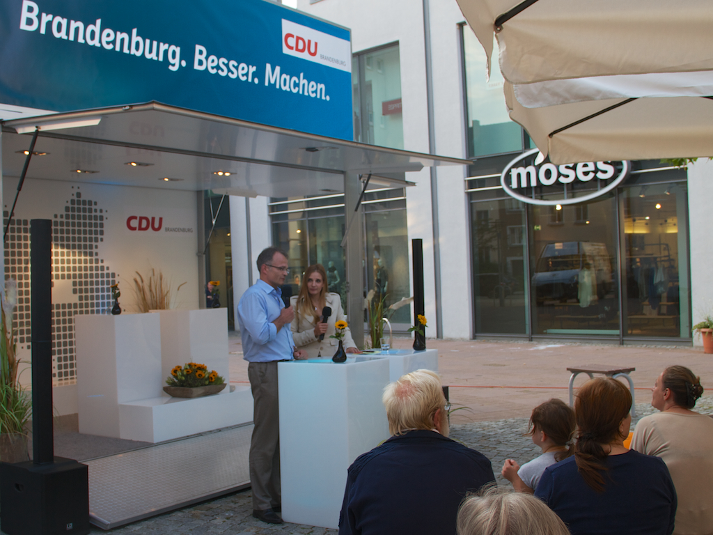 Die nächste Veranstaltung der Brandenburg. Besser. Machen.-Tour fand auf dem Marktplatz in Fürstenwalde statt. Hier sehen Sie einige Impressionen. Neben Spitzenkandidat Michael Schierack nutzten auch unsere Landtagskandidaten Dierk Homeyer, Corinna Fritzsche-Schnick und Kristy Augustin die Möglichkeit, mit den mehr als 150 Gästen ins Gespräch zu kommen.
