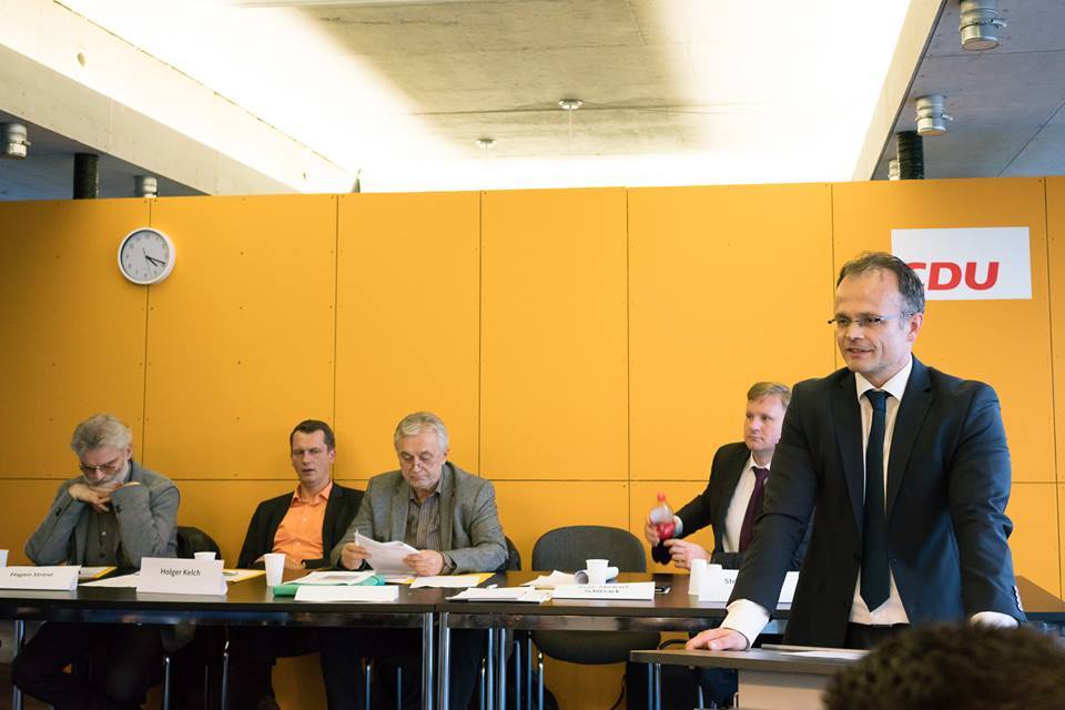 Michael Schierack bei seiner Rede an die Mitglieder. m Hintergrund: Hagen Strese, Holger Kelch, Joachim Käks & Steeven Bretz (v.l.n.r.)